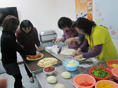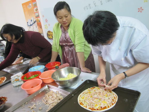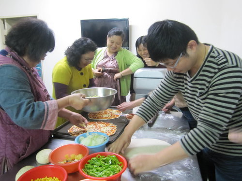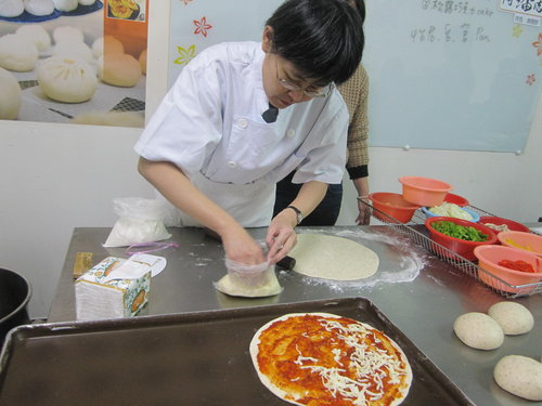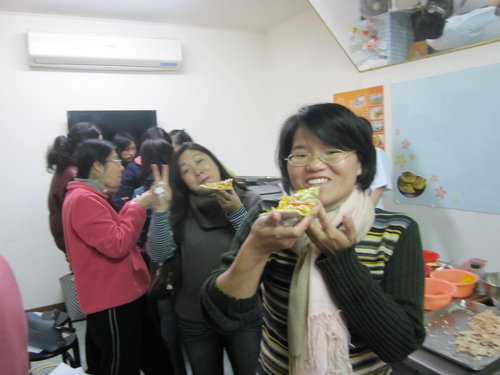 品嘗剛出爐的披薩..